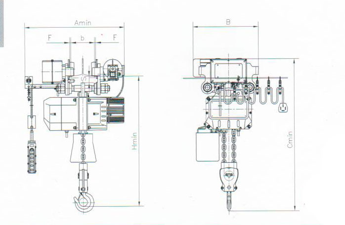 電動(dòng)小車式環(huán)鏈電動(dòng)葫蘆結(jié)構(gòu)圖: